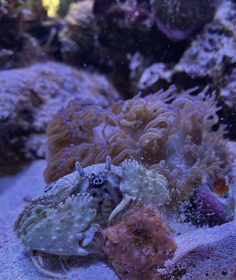 Diese Art von Krabbe kann problemlos in ein Mischaquarium integriert werden. Sie ist nicht räuberisch, ernährt sich von Aas und lässt die Korallen in Ruhe.