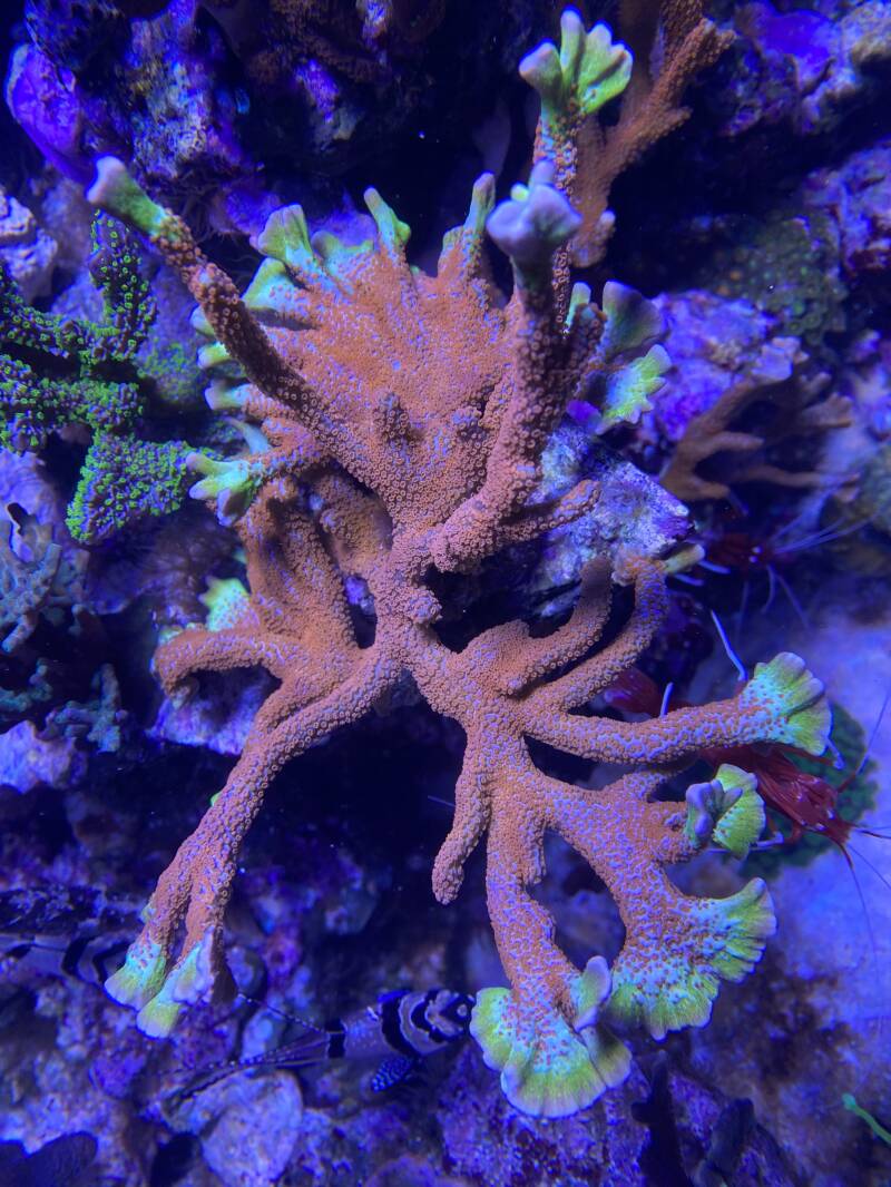 Gerade diese, speziell gefärbten Tiere, wachsen eher langsamer und sind allgemein anfälliger als andere Korallen der Gattung Montipora.