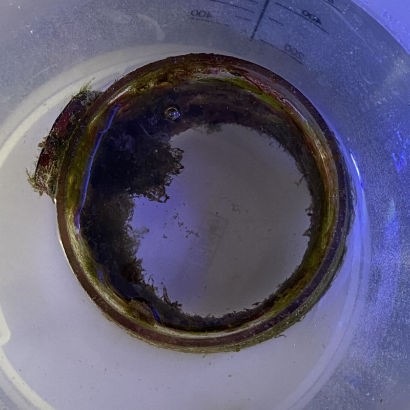 - Wenn sich das gesamte Pulver aufgelöst hat, könnt ihr die Pumpe direkt vom Aquarium in den Behälter mit der Säure legen und einfach stehen lassen.